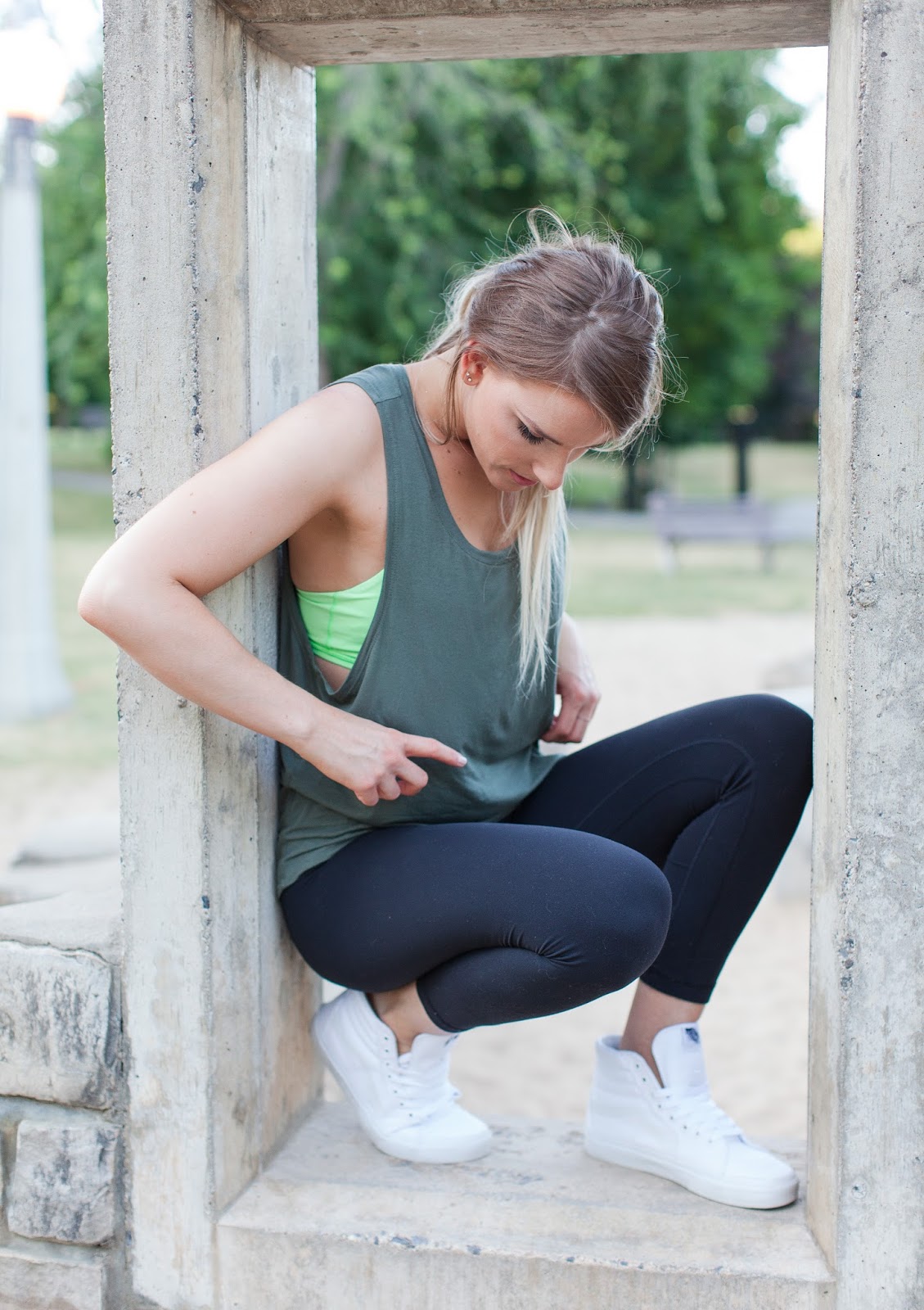 I find myself, more and more, opting for comfy basics when the weekend hits but I still want to look pulled together. To pull of the look, grab your neutral workout pieces, and then I like to up the cool-girl factor with high-tops. I’m loving these fresh white kicks for Summer–nothing better than a new pair of sneaks #amiright ?!
