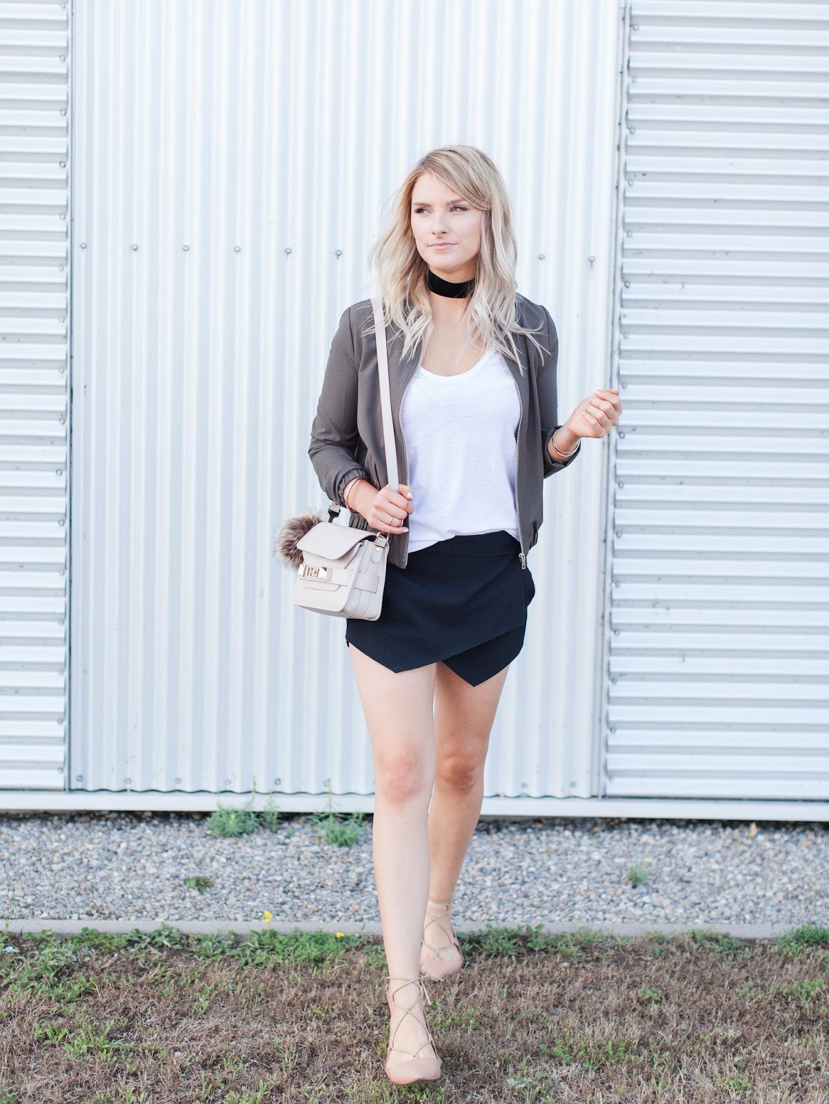 Since we are still in the swing of Summer, I paired mine with an easy skirt, plain t-shirt then spiced things up with a velvet choker and my fave lace up flats. Denim shorts would be a great alternative, if you’re looking to show some leg.