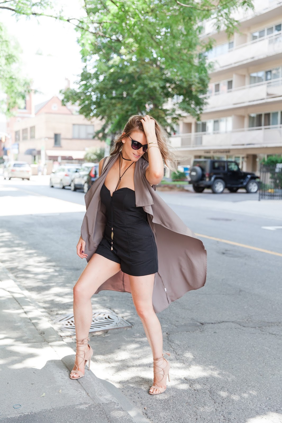 Still Summer loving over here but will be shifting gears to more Fall outfits soon so wanted to share a really great transitional piece and how to wear it now while the temps are still soaring. The drapey vest or sleeveless trench is such a great piece for layering over a romper, body hugging dress or even denim shorts and a cami. It’s again one of those great third pieces that just looks chic without trying.