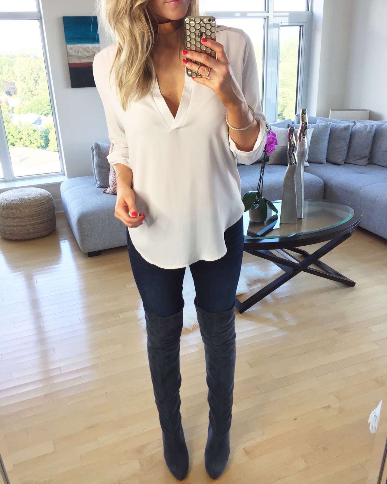 This is so pretty, I have it in the blush colour above, but loved it during the #NSale. Great for pairings with denim or tucked into a skirt for the office.