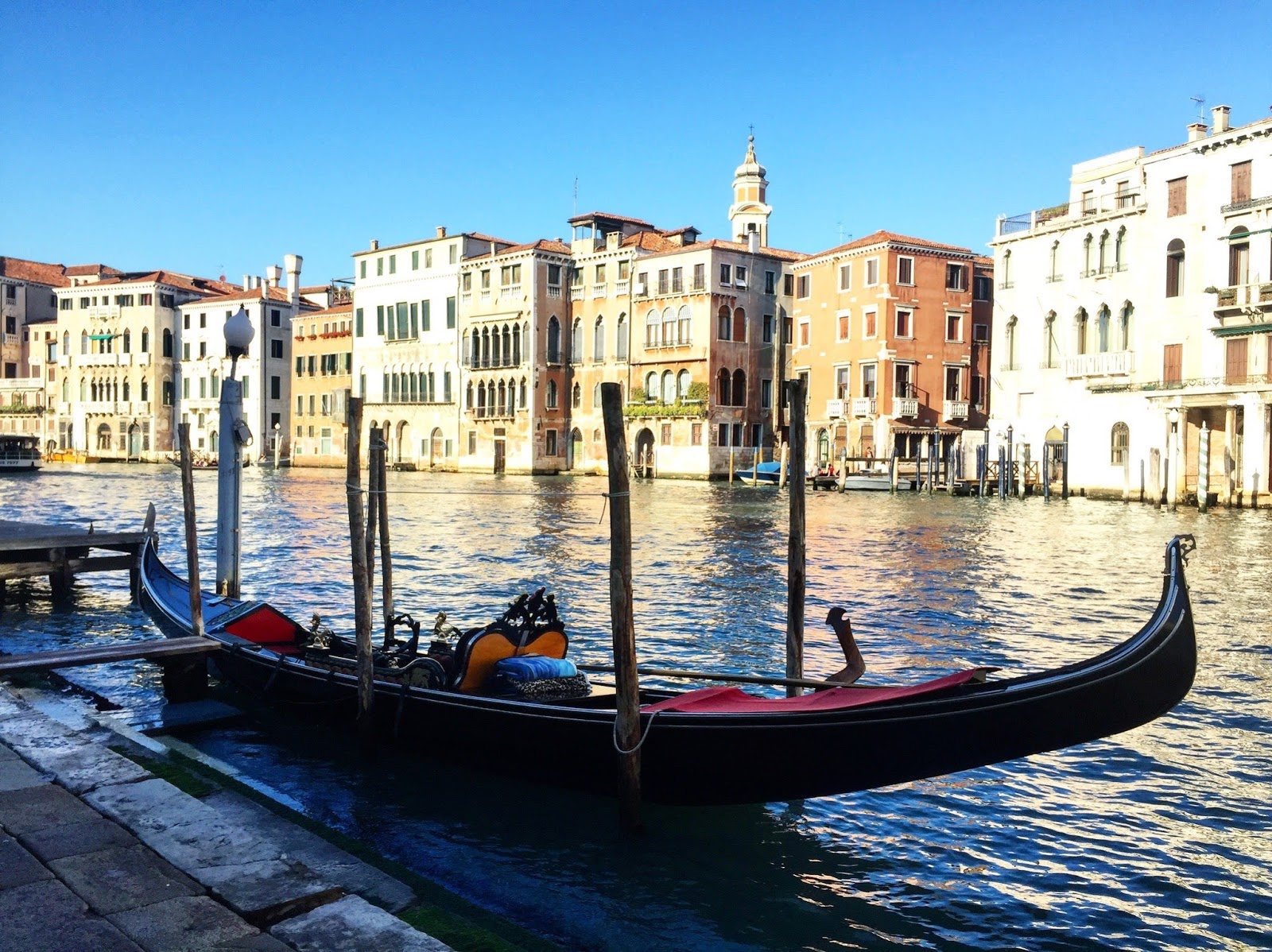 We dropped our bags at the hotel, freshened up, and spent our first day wandering around. We got walked along the canals, saw people taking gondola rides, passed beautiful buildings and more.