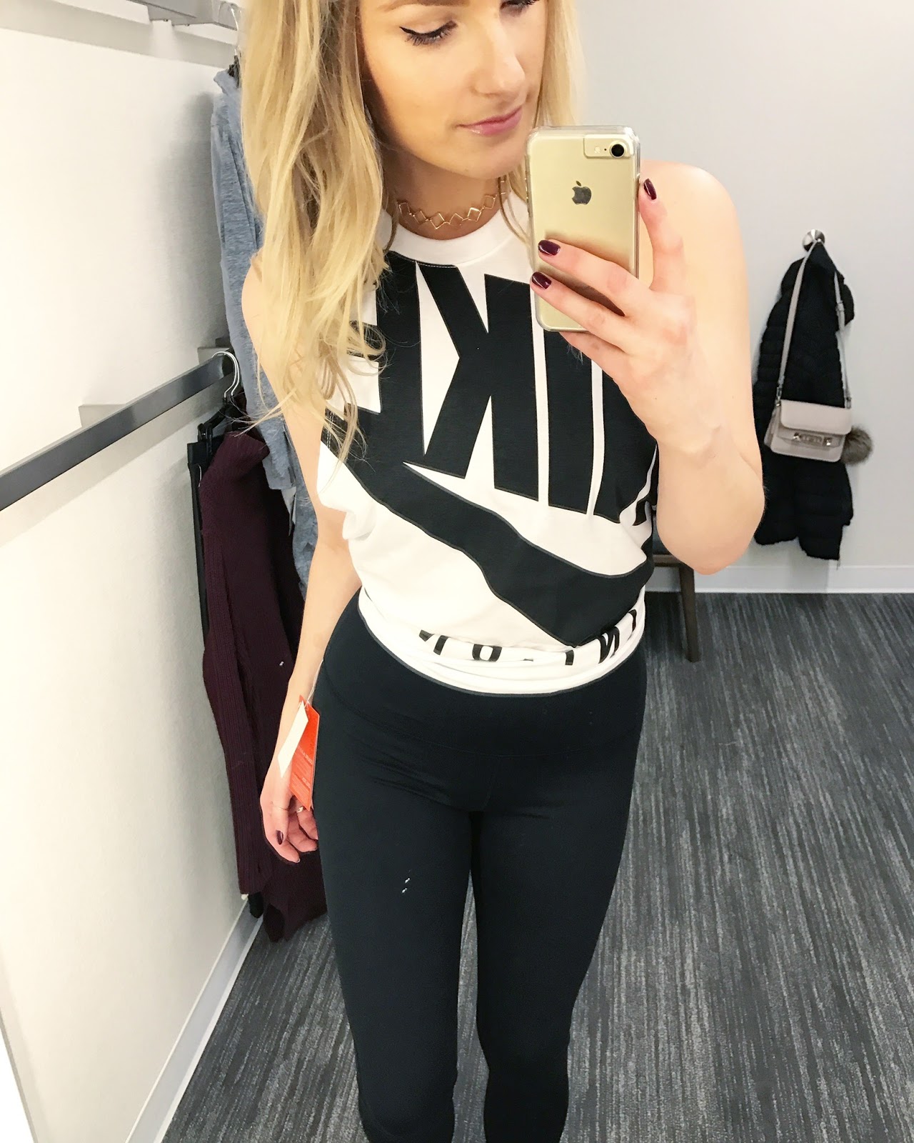 I loved this tank, which also comes in black, but was really itching to try on these high waist leggings. You girls know I love my Lululemons, but I was pleasantly surprised with these ones. I purchased them in a size medium and plan to wear them with regular outfits, and to the gym.