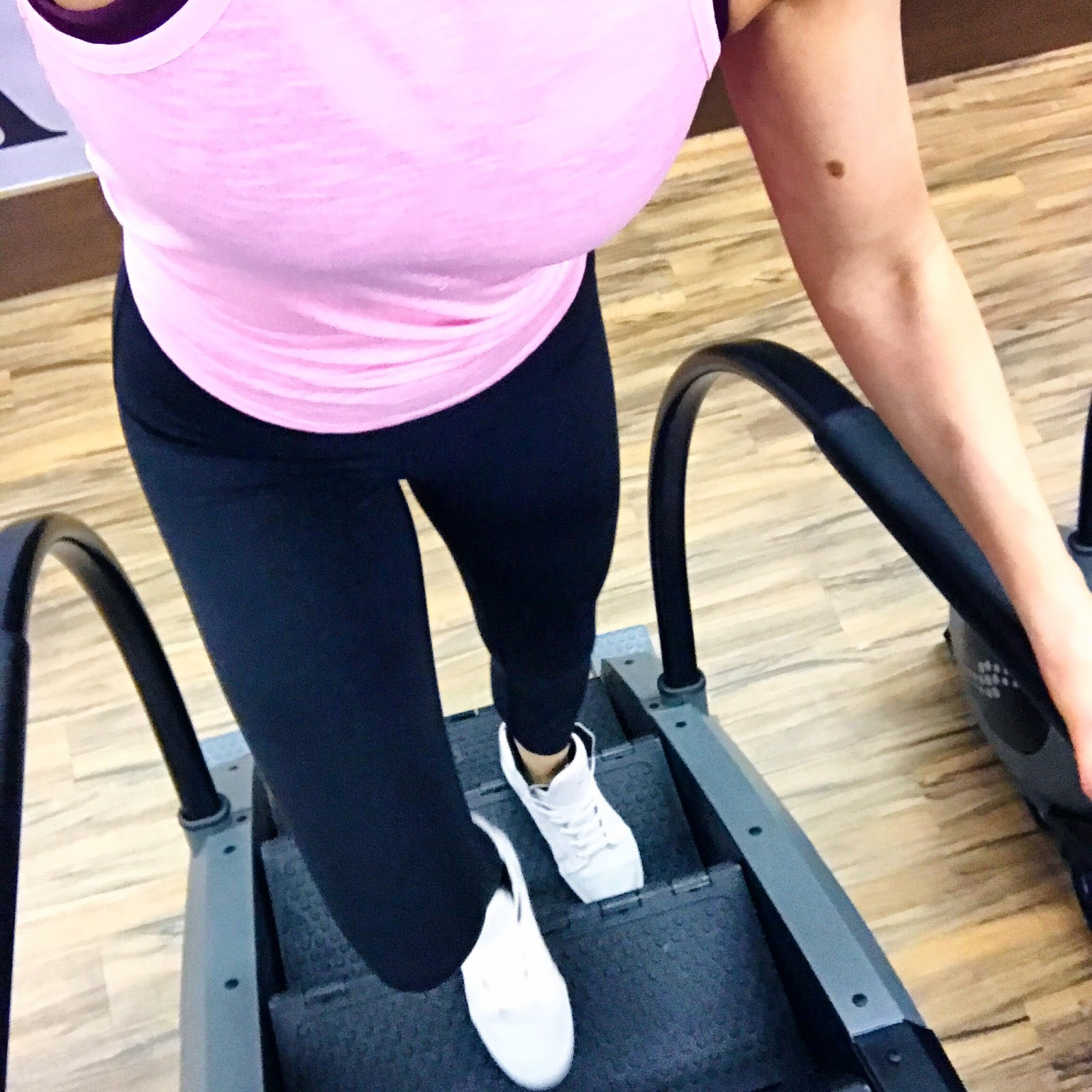 On Saturday we hit the gym in the early afternoon, after sleeping in and lounging around for a bit. I recently scooped up and and am totally obsessed! The sweatshirt is kind of like a neoprene material, with fleece on the inside, so it’s super cozy. I went with a size 8 and it’s a good fit in the arms, and roomy in the body (this is more of a boxy fit). I love the kangaroo pocket & there is a sewn in cell phone & credit card mini pocket on the inside.